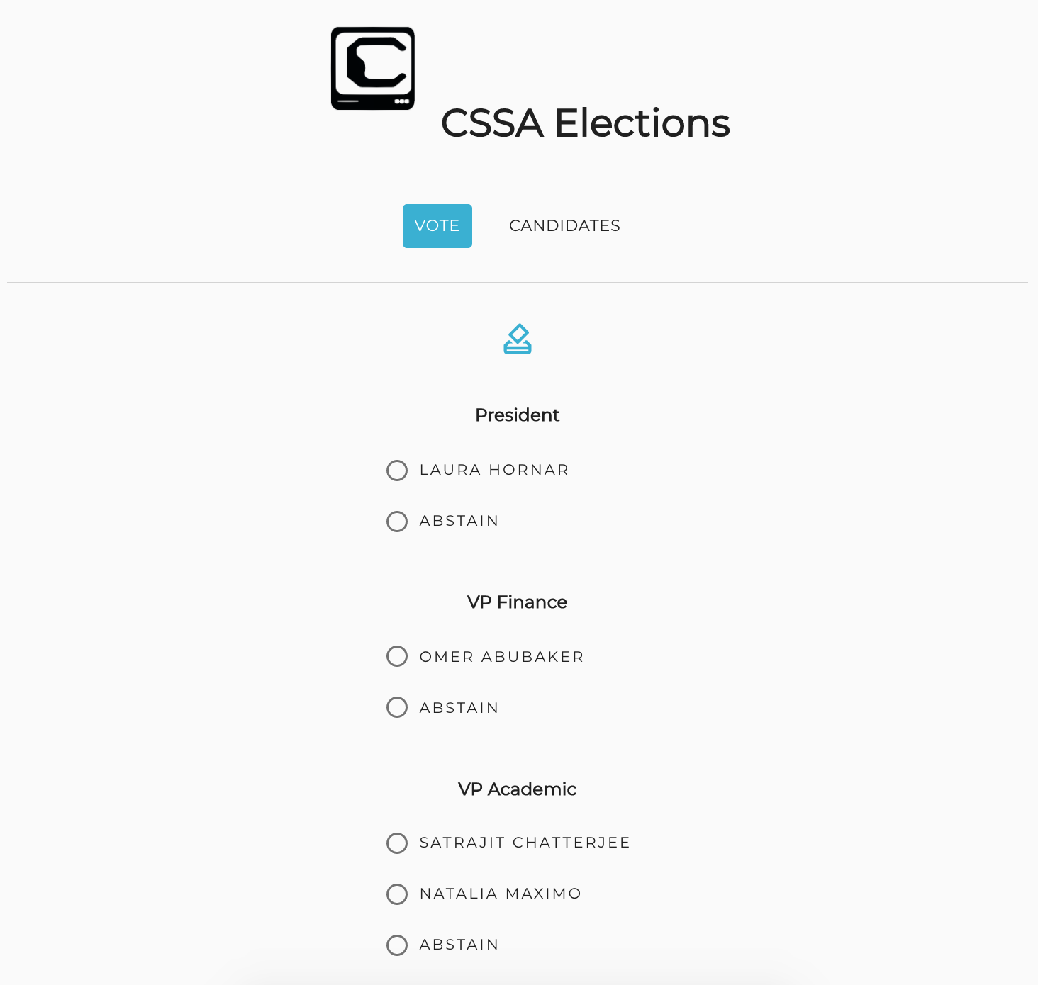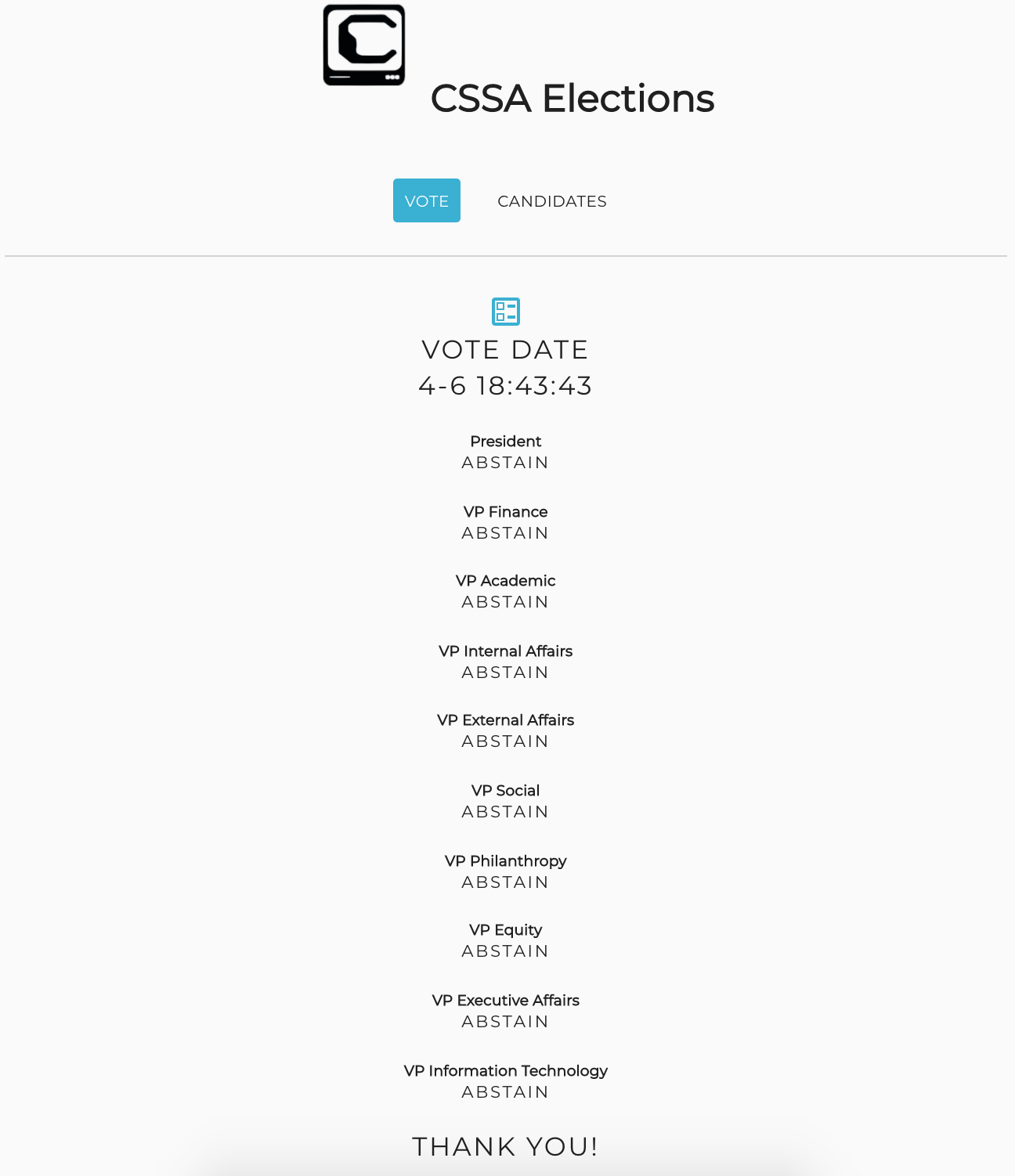 As a result of being the VP IT for the current academic year, I took the responsibility to design, implement, maintain & monitor the official elections platform for the CSSA 21-22 elections.