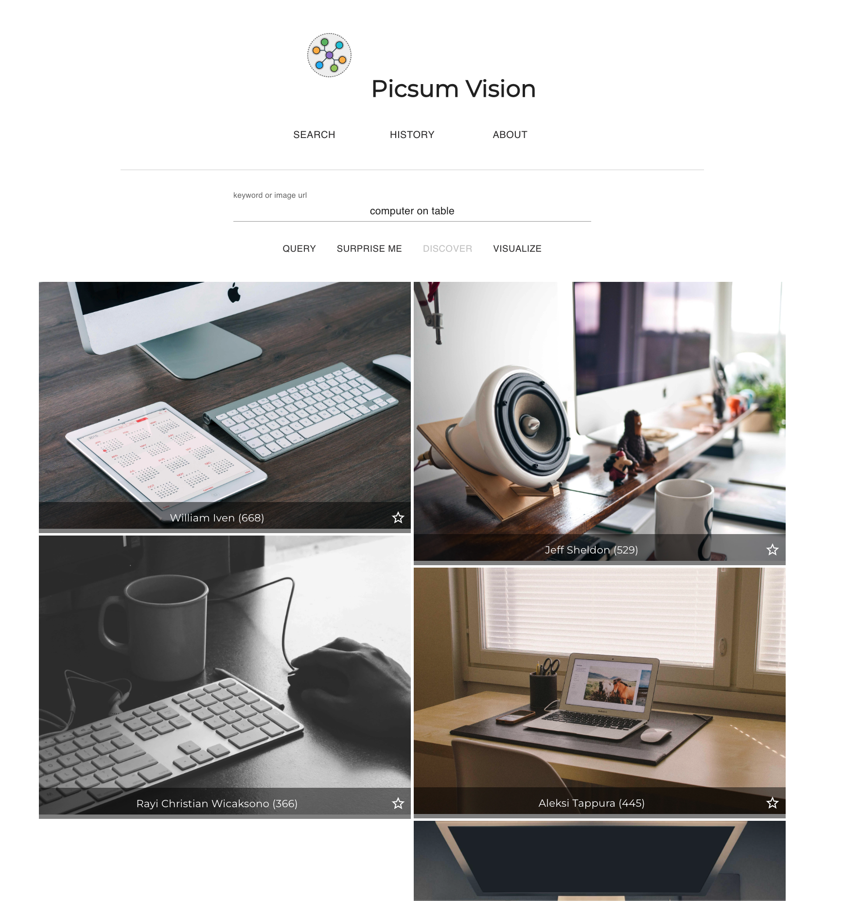 Built with Lorem Picsum Photos, Google Vision, and ArangoDB 🥑