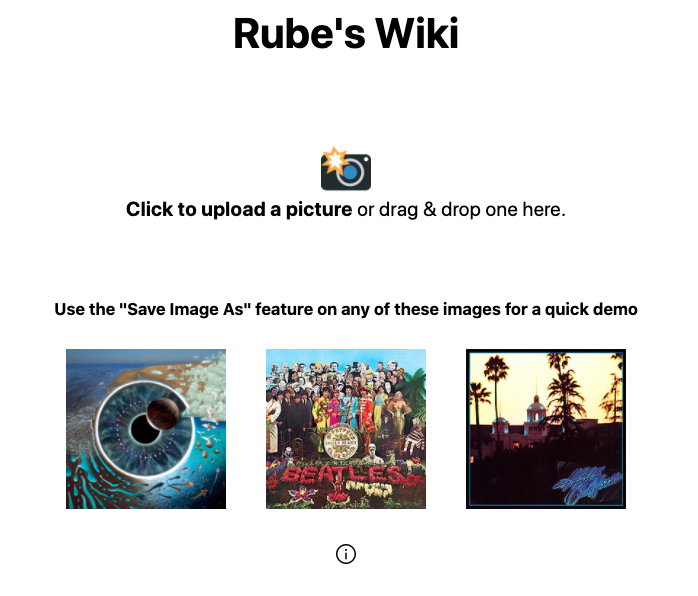 Built with Express, using Typescript, JQuery, Handlebars, HTML, CSS, and the Google Cloud Vision & MediaWiki APIs.
